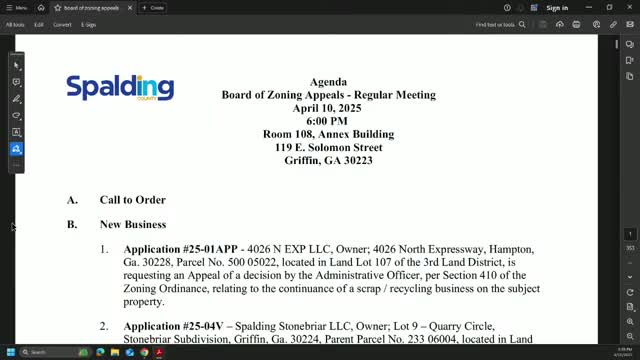 Spalding County Board of Zoning Appeals tables 12 Stonebriar subdivision applications; scrap recycling appeal postponed