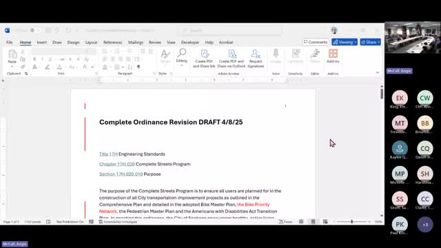City drafts Complete Streets ordinance update to add ADA reference, standards and plan-based triggers