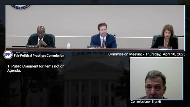 FPPC approves settlement in enforcement case after staff presentation; chair recuses from item