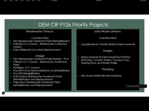 Hawaii County Department of Environmental Management outlines wastewater upgrades, landfill lifespan and recycling gaps