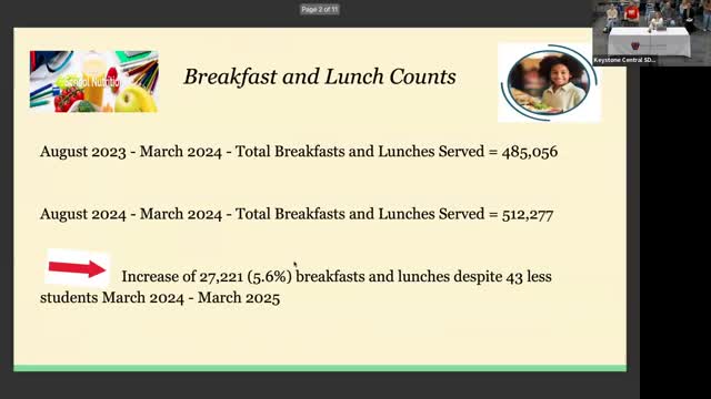 Food and Nutrition supervisor reports 5.6% rise in meals served; summer feeding to run at Central Mountain Middle School with limited pick‑up sites