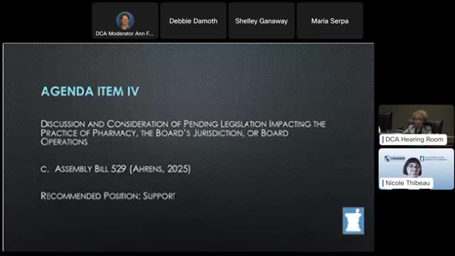 Committee votes: support for a package of pharmacy-related bills; one abstention on PBM reform