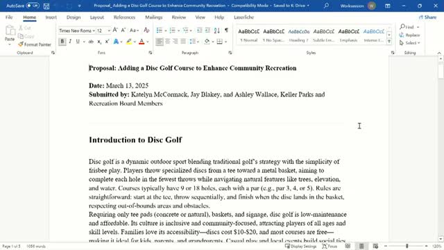 Parks subcommittee pitches disc-golf options; board agrees to present recommendation with background to council