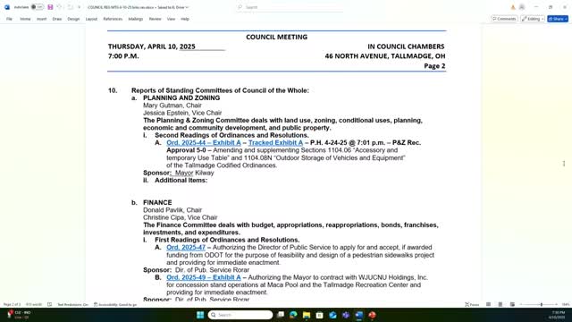 Tallmadge council approves sidewalk grant application, concession contract and environmental remediation contracts; all votes 6-0