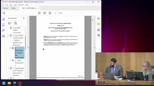 Ways & Means accepts Eaton County's 2024 audit; auditors report clean opinion