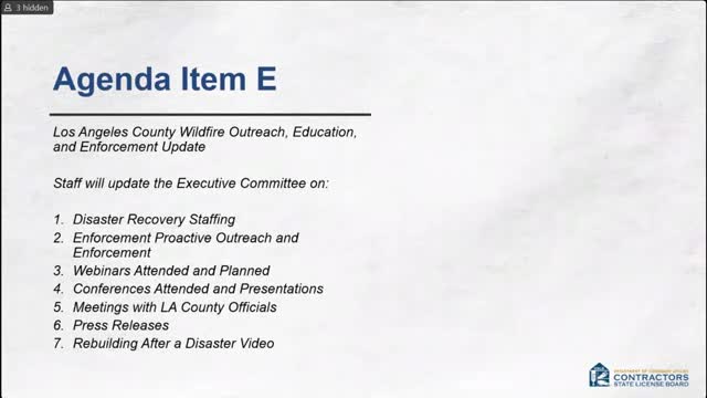 CSLB staff at Los Angeles disaster recovery centers as wildfire outreach continues; $529,000 reimbursement reported
