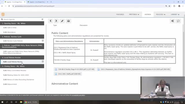 Policy committee flags legal uncertainty over nasal epinephrine spray, will consult solicitor and legislators