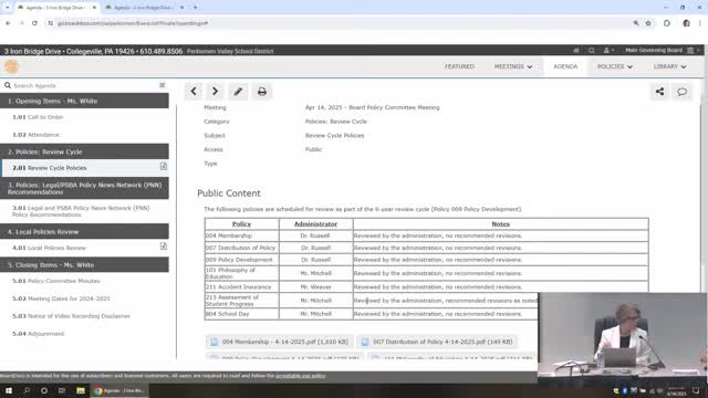Perkiomen Valley policy committee updates assessment-policy language, debates role of formative tests
