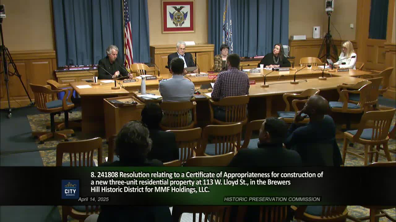 Commission holds review of proposed three-unit development at 113 W. Lloyd Street in Brewer’s Hill, requests material and window revisions