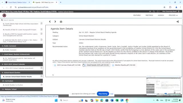 Yankton board certifies April school-board election; winners declared