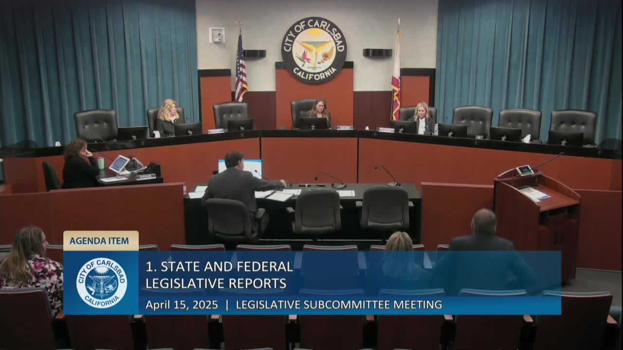 Carlsbad legislative subcommittee adopts positions on several state bills; motion passes unanimously
