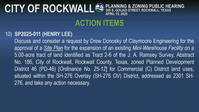 Commission tables proposed mini-warehouse expansion after ARB flags materials, density and landscaping variances