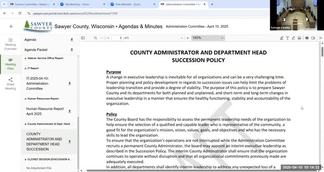 Sawyer County administrative committee forwards succession policy to full board