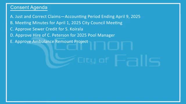 Council approves consent agenda including ambulance remount, pool manager hire and sewer item
