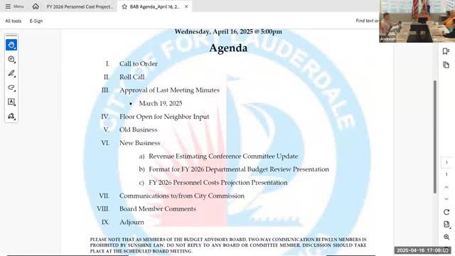 Advisory board reviews revenue options, personnel cost projections and public‑safety staffing concerns