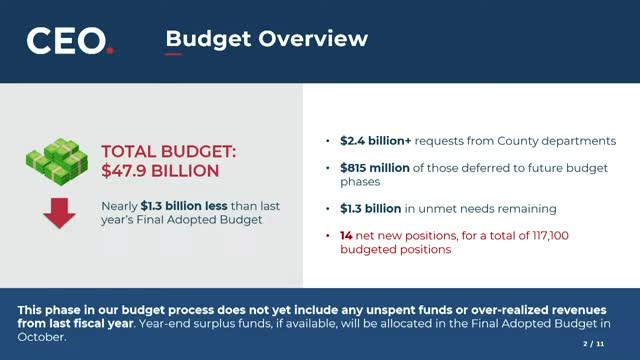County CEO proposes $47.9 billion FY2025-26 budget, warns of $4 billion AB 218 settlement and wildfire losses