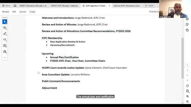 JCPC staff to circulate annual plan and certification; executive committee may sign off prior to county commissioners’ June review