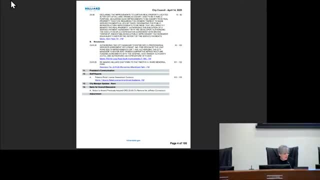 Council declines to rename Hilliard East Park for Timothy A. Ward after motion fails for lack of second
