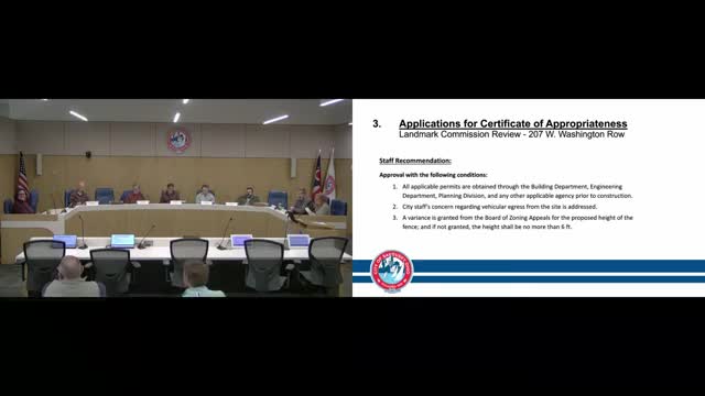 Landmarks panel approves patio, new doors, signage and 8-foot dumpster enclosure at 207 West Washington Row with conditions