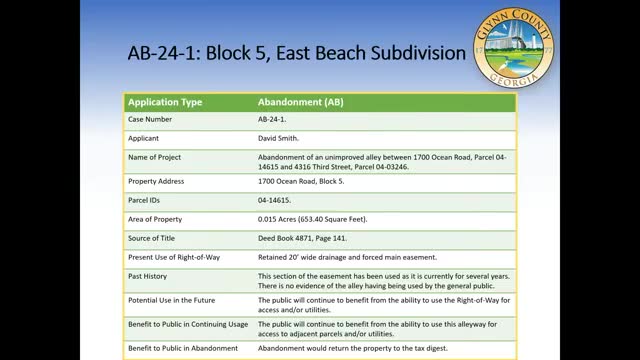 Commissioners approve abandonment of unimproved alley on St. Simons with drainage easement retained
