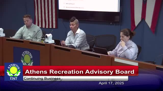 Athens Recreation Advisory Board staff outlines summer projects, events and staffing; no quorum halts formal business