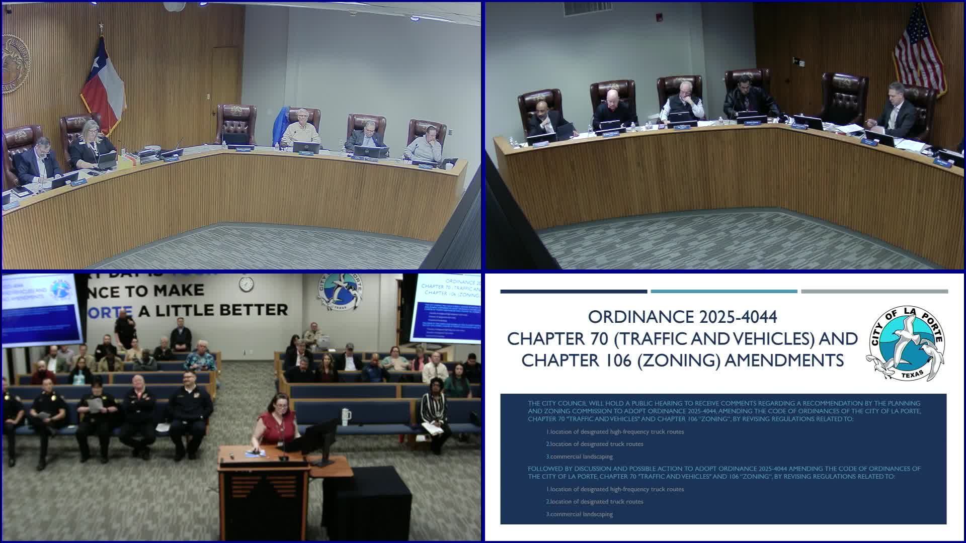 Council rejects addition of Old Underwood to high‑frequency truck route, approves commercial landscaping changes