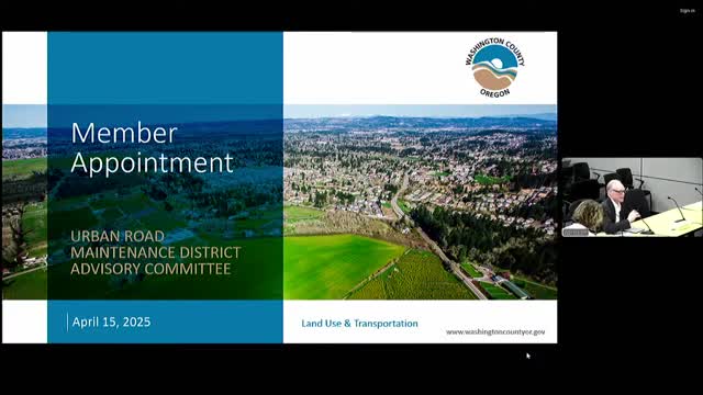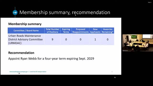 Board to consider Robert Webb appointment to the Urban Road Maintenance District Advisory Committee