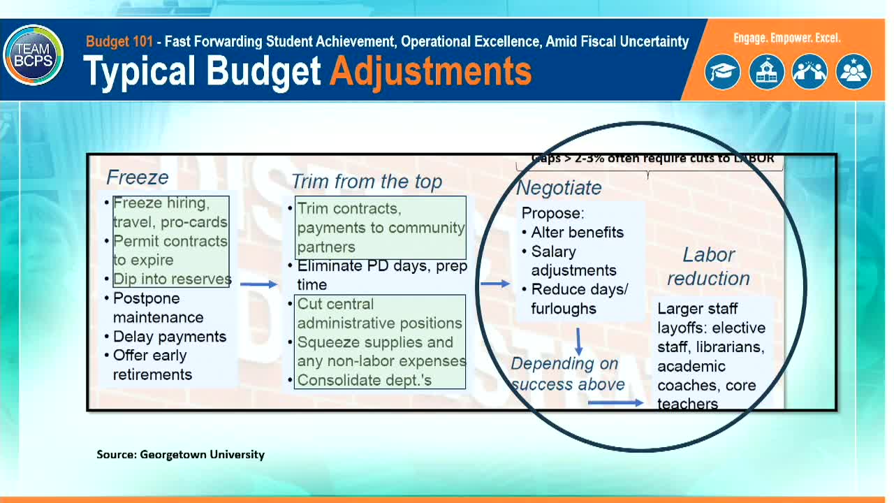 Superintendent outlines FY26 budget choices; central‑office reductions and labor contingency highlighted