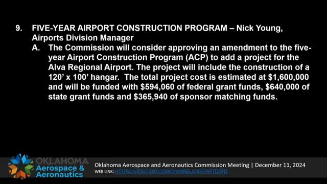 Oklahoma Aerospace Aeronautics Commission reports negative unencumbered cash balance for FY25 amid heavy airport-project spending