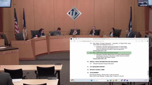 Council awards $59,150 contract for 2025 sanitary sewer spot repairs