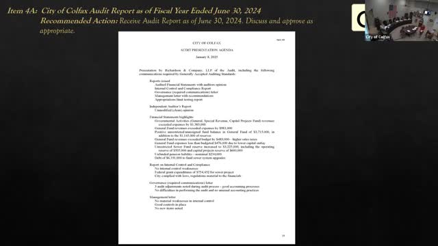 Colfax accepts clean FY2023-24 audit; council raises manager spending cap and advances sidewalk ordinance