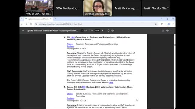 Board votes to support AB 1502, its sunset review bill with requested proposals included