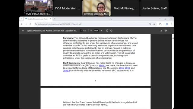 California Veterinary Medical Board takes no position on AB 516 expanding RVT/assistant tasks