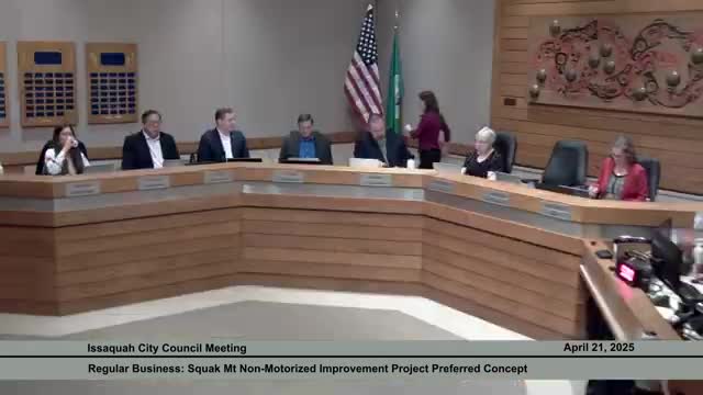 Council adopts Squawk Mountain non‑motorized study, favors sidewalks over uphill bike lane