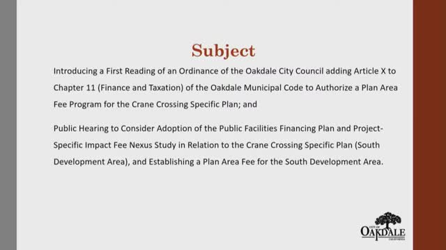 Oakdale council adopts plan-area fee to fund 'backbone' infrastructure for Crane Crossing south area