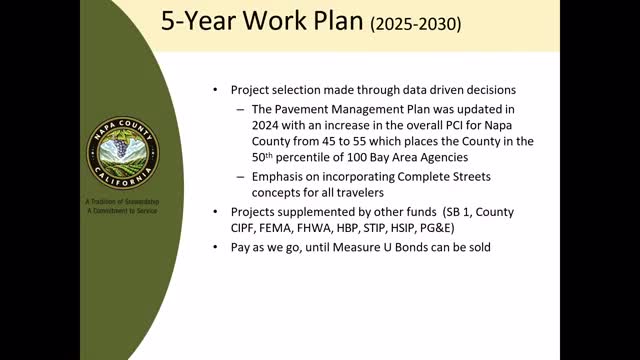 Board adopts Measure U five‑year roads project list; long-range bond plan outlined