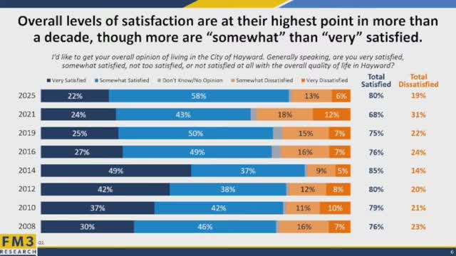 Hayward resident satisfaction survey shows improved city service ratings; housing remains top concern