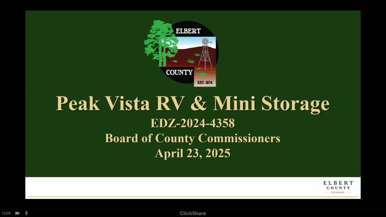 Board denies Peak Vista RV and Mini Storage EDZ site plan after resident opposition and staff concerns about compatibility