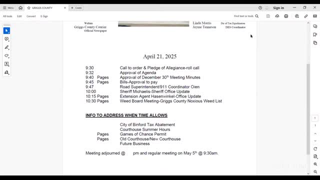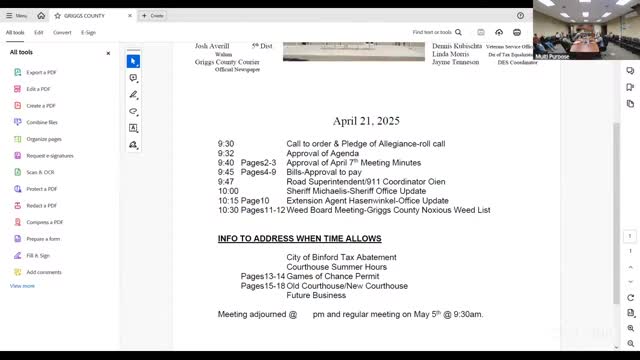 Votes at a glance: Griggs County Commission approves bills, office swap, rekeying and other routine actions