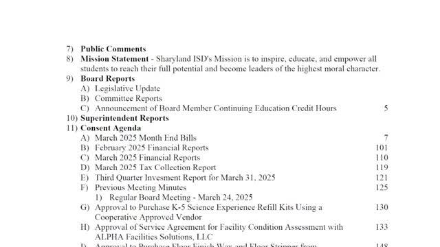 Votes at a glance: Sharyland ISD board meeting — approvals on consent items, personnel renewals, weather‑event pay, instructional materials