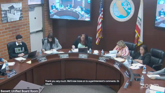 Bassett Unified board approves seven proclamations, settles workers' comp claim and approves consent calendar; legal amendment item tabled
