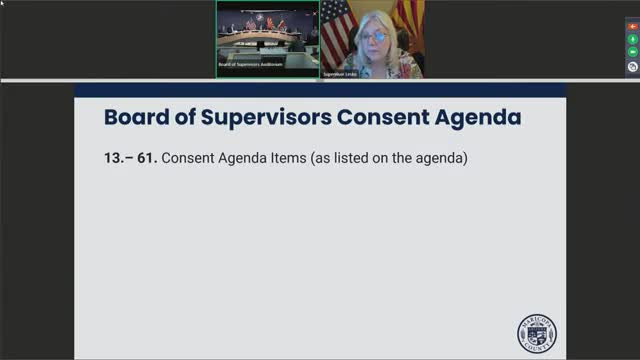 Maricopa County supervisors approve wide-ranging consent and regular agenda items; votes carried unanimously
