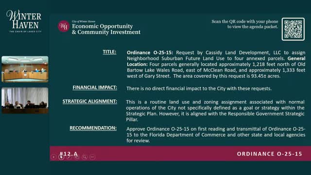 Planned 93-acre Cassie Land Development triggers water-capacity concurrency questions; staff to clarify spreadsheet methodology