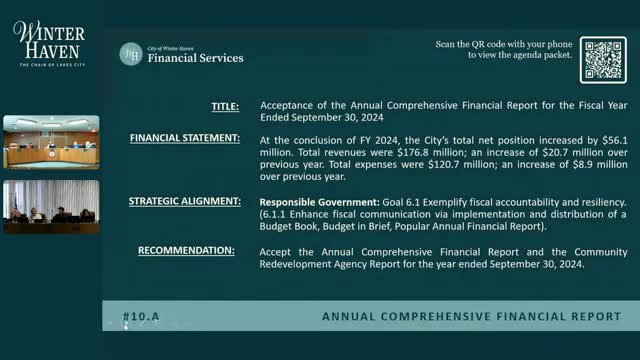 City staff report clean, unmodified audits for ACFR and CRA; presentation scheduled