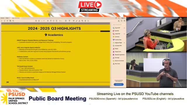 Palm Springs Unified adopts long‑range facilities plan, approves principal appointment and multiple contracts and labor proposals