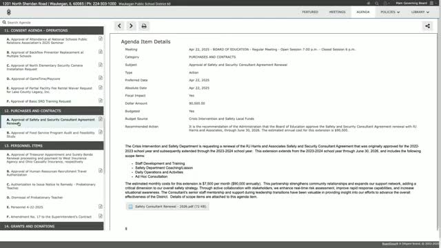 Waukegan board renews $90,000 safety and security consulting agreement with RJ Harris & Associates
