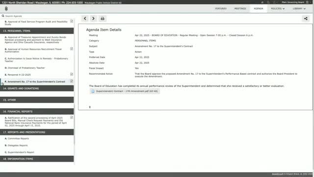 Votes at a glance: key Waukegan CUSD 60 board approvals on April 22, 2025