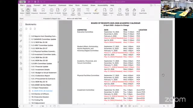 Board of Regents approves budget changes, investment policy and graduation list; several procedural items adopted