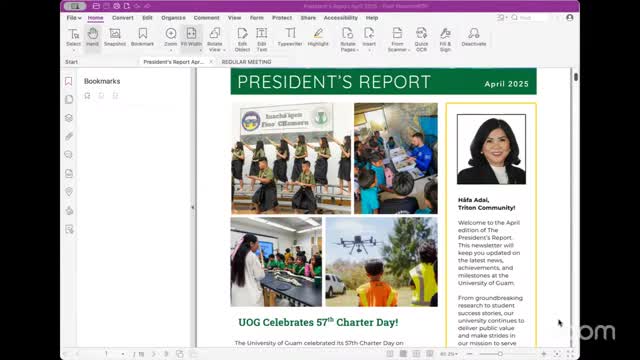 UOG president reports Carnegie research designation and monitors federal grant impacts; no furloughs reported