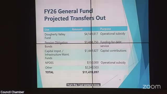 San Ramon finance staff presents FY26 General Fund baseline: $71.5 million projected, 4% potential savings factor proposed